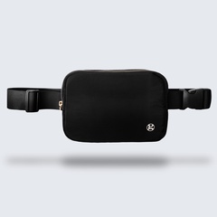 Our belt bag has a perfectly simple, sleek design & neutral black-and-gold colourway that goes with any style of outfit. Enjoy the convenience of keeping small items organized in the slim mesh pockets inside the main compartment, or in the passport-perfect pocket on the outside. Plus, the adjustable strap gives you the option to wear it around your waist or across your body, and its 1L capacity is plenty for all your essentials—so you can have everything on hand, while keeping your hands free!